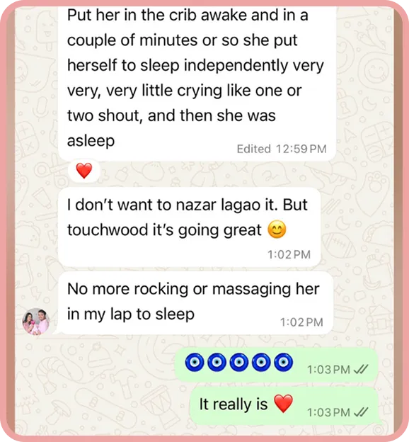 I fixed my own baby's sleep gently. And I've since helped 150+ families achieve the same results without tears.